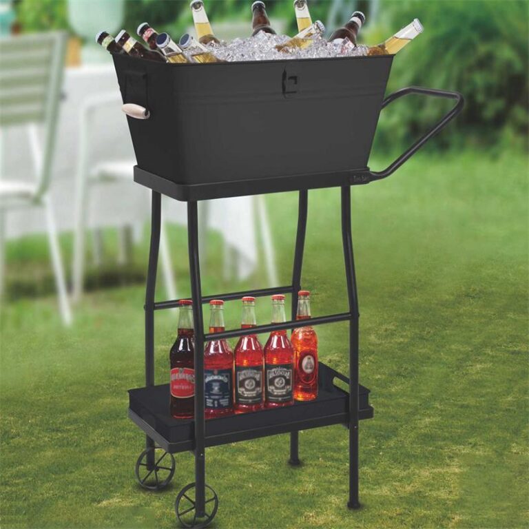 Heavy-Duty Iron Ice Bucket with Rolling Stand and Serving Tray