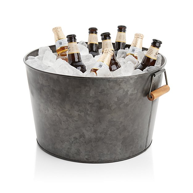 Metal Round Ice Bucket with Wood Handle