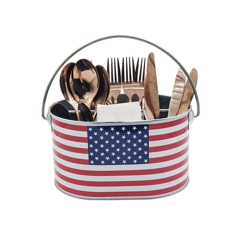 Durable Metal 5 Compartments Utensil Holder with American Flag Design